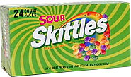 Yowza! Sour Skittles aren't sour, they're excessively sour, to the point where, though I only ate like four, my mouth puckered like William Burroughs at a male calendar shoot. The sour wears off quickly, and resolves into satisfying Skittles sweetness. Four is about my limit.