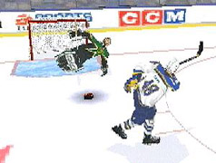 The programmers made up for this by replacing the "special move" button with a new objective: BIG HIT. This button is too much fun. Basically, use the speed button to get near the player, hit the Big Hit button, and SMACK, your player leaves his feet to crush the opponent with a huge body check. I played the French National team, and injured eight players. I know. I'm violent. But it's just a game! I don't mind the French hockey team per se. I'm sure they're trying to be good. But they're easy targets.
