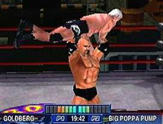 Graphically, Mayhem is nothing special either. The wrestlers look pretty good, and are reasonable facsimile of the real deal, but I'm just not blown away. They did a nice job capturing each of the different WCW rings, like Monday Nitro and Thunder and all the various pay-per-view rings, but no one buys a wrestling game because the rings look cool. The wrestler's entrances are pretty good, but they suffer compared to Attitude. Most of the theme songs are there, but many aren't; rather the wrestlers come out to what's called their "faction theme," which is the theme of another wrestler they're aligned with. Crowd noise gets very loud at times, but there aren't any chants or specific comments toward wrestler from the crowd as in Attitude. The commentators, Tony Schiavone and Bobby "The Brain" Heenan have a lot to say, but they repeat themselves on occasion, and Schiavone gets just as annoying here as he does in real life. It is pretty cool, though, when he tells you that "I can't believe a WCW star of his caliber would use the same move OVER AND OVER" when you use the same move too often. "Mean" Gene Okerlund also pitches is with the ring introductions. The camera is very dynamic, swinging around, and zooming in and out to get the best view of the action. At times, it gets obnoxious, particularly when you leave the ring, because you can easily lose track of your wrestler.