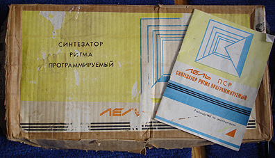 A surprise bonus was getting the original box & manual with the deal, which somehow manages to eminate a very late 40's American aesthetic, but in fact, handwriting on the manual's last page admits to this box leaving the factory in April 1990 (!). I do wish I could speak/read Russian, not because of any gifted class nerdy-neediness, but so I could give this thing a full twirl. Some drum machines are easy as pie to program (Korg's Electribe series), and some are ungodly nightmarish (Korg's circa 1981 metallic KPR-77, for instance). I'm still unsure whether this Lel is programmable rhythm-wise - the red buttons hint at 'possibly'.