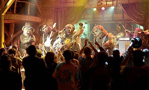 So everyone jumps on the old tour bus complete with dimwitted human roadie as we race across the country picking up all four band members, all the while being gently chased by a couple of clueless state cops who somehow believe Beary has been kidnapped. It's one of a number of lazy pieces of plot contrivance strewn about. Therein lies my main beef with this movie. If Disney was solely just going for the 9-and-under crowd on this one, I suppose it would be ok, but there's a vague sense of aiming at the parents as well. Fine, that's cool, but do it like the Henson team would do it—by actually trying and succeeding on all levels. You can keep things cute by having big talking bears for the kids, but actually throw some thought into the stuff for the adults. Maybe I'm being a "fact nerd" here, but by claiming the group started in '77, then cutting back to black-and-white footage of the band singing a faux-doo wop song, complete with bear-wearing cardigans? OK, MAYBE if they had their own sort-of Statler Brothers-esque TV show in the early 80's, but no reference to this was ever made. Have most American parents today just hit a point in their lives that they don't care what the hell they see anymore, just as long as the kids are quiet for 80 minutes? I say ,sit the kids in your lap and read the encyclopedia together, you Chilis-eatin' breeders. OK, ok, very negative-energy review, but what can I say to a DVD I continually wanted to fast-forward through, but was worried about bad "Hot Potato" karma coming back to bite me in the ass? Some positive aspects to the film: the talking bears were fairly well done, though it wasn't too hard to picture a team of NASA scientists off-screen controlling each eyeball. Walken had the sole laugh-out-loud moment for me when he starting doing a "Musical Mike" armpit solo. I did enjoy the old fake Hanna-Barbera "Country Bears" cartoon shown at one point, as well as the fake album covers, even though I could argue the "fake authencity" factor of those, too. Also, as much as I could completely care less about John Hiatt, I do respect someone who's hung around the biz as much as he had—the music he wrote for the film was inoffensive and did its intended job. And as for cameos, Bonnie Raitt makes sense as a singing bear Don Henley much less so. Fans of the film (uh, stand up and be counted if you're out there) might say "Geez, Milton, lighten up on the fake authenticity bullshit." Fine, I say, so I'll take a step back from the mess, completely ignoring that aspect. I can still say this movie was a ramshackle, inarticulate, autopilot pile, and Disney is welcome to say the same about my review of it.
