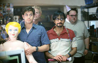 How Milton even heard about this movie is beyond me. It's the kind of shit that shows up with a sole copy on Blockbuster's new release shelf for about a week, before being forever buried in the aisles of the comedy section somewhere between Finding Forrester and Forrest Gump (um, wait, were either of those comedies?) Arch and self-satisfied, $20 Million attempts to be a "dot-comedy" set in the internet boom of the late 90s except it's fiercely pro-dot-com, and it was released in 2002. Jon Favreau, of Swingers fame (and nothing else), provides a screenplay rife with contrivances and clumsy dialogue that's trying desperately to be "hip," but succeeds mostly in producing acrid blank stares. Joke after joke is deployed, your lips pucker, and you sit in disbelief that anyone involved might have thought they were doing something worthwhile. Spiritually, it's Revenge of the Nerds crossed with Wall Street and seasoned with more Jerry Maguire than is good for anyone. Adam Garcia turns in the sort of Tom Cruise-style character that made The Color of Money and Cocktail so charming fifteen years ago. The story concerns a ragtag group of tech-folk endeavoring to invent the world's first $99 portable computer. The requisite "programmers are such nerds" insights are made, with bountiful focus on internet porn and compulsive behavior. Surprisingly, Jake Busey comes across as incredibly appealing—mainly because everything around him is even worse. The beautiful and talented Rosario Dawson wastes her career here, so far above the material and the rest of the cast that you wonder whether it was done as a favor to stave off blackmail. Good as she is, her subplot is easily the most vacant and unnecessary of all. And worse, the purity her character represents (she's a "simplify your life"-type artist) is hijacked by Garcia to market his invention—and she sees this as a good thing? When the invention is finally revealed, it's pretty cool, but not worth having sat through the preceding hour and a half. The whole belabored thing could have been done more effectively in about twelve minutes. Or, come to think of it, in a three-panel "Dilbert." There is no rating more appropriate for this than The Finger. For good measure, I award the same rating to the colleague who forced it upon me. Milton, I will make you pay.