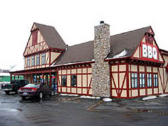 A tradition developed at some time or another of customers signing the walls with magic markers, giving capsule reviews of the food, the surrounding area, the weather, sports, and who they were making out with that particular night. The tradition fizzled as the walls filled, I guess, because we were offered no such opportunity. We were, however, offered an excellent selection of meat-filled dishes, from baby back ribs, to pulled pork sandwiches, beef brisket, pork tenderloin, pork chops, and the like. That first night, we all opted for a slab of ribs, and were not disappointed. The ribs were hot, meaty, and tender, and the wide selection of sauces was exploited fully. Each of us left feeling roly-poly and very satisfied. We sampled take-out from the original Super Smokers several times after that, and each time the quality was just as high. A truly great day came recently, however, when a Super Smokers restaurant opened in O'Fallon, Illinois, mere minutes from my home. A much larger and newer affair than the home restaurant in Eureka, this monstrous two-story place moved into a somewhat cursed building, which had housed numerous failures, such as Wolfgang's Brewery, J.D. Nick's, and Hardhats Dance Cafe, which was not what it sounded like.