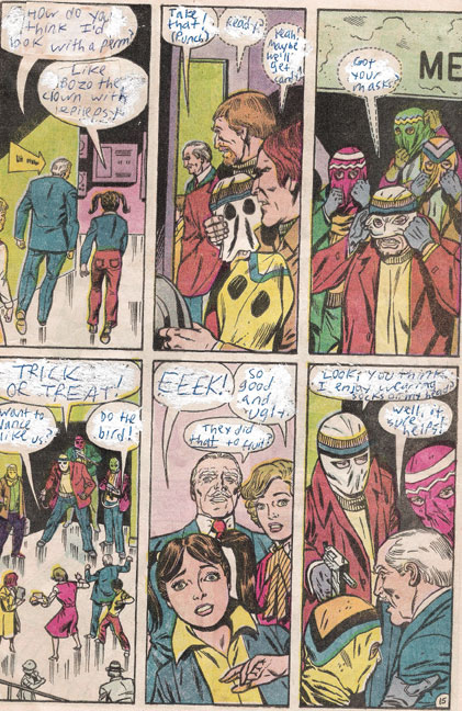 Col. Sanders: How do you think I'd look with a perm? Hortense: Like Bozo the Clown with epilepsy. Col. Sanders: Take that! (punch) Man #1 (quietly): Ready? Man #2 (quietly): Yeah, maybe we'll get candy! Man #1 (quietly): Got your masks? Man #1: TRICK OR TREAT! Mrs. Buttface: Want to dance like us? Col. Sanders: Do the bird! Hortense: EEEK! Mrs. Buttface: So good and ugly. Col. Sanders: They did that to fruit? Man #1: Look, you think I enjoy wearing socks on my head? Col. Sanders: Well, it sure helps!