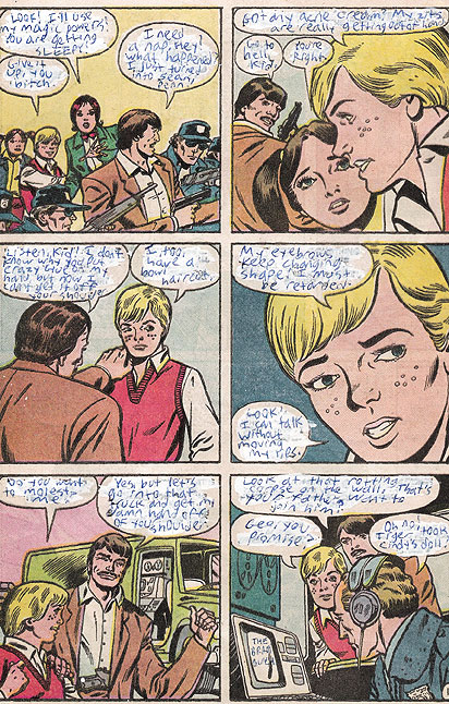 Mrs. Gumby: LOOK! I'll use my magic powers! You are getting SLEEPY! Policeman: I need a nap. Hey! What happened? I just turned into Sean Penn! Cecil: Give it up, you bitch. Cecil: Got any acne cream? My zits are really getting out of hand! Hortense: You're right. Policeman: Go to hell, kid. Policeman: Listen, kid! I don't know why you put Crazy Glue on my hand, but now I can't get it off my shoulder. Cecil: I, too, have a bowl haircut. Cecil: My eyebrows keep changing shape! I must be retarded. Look! I can talk without moving my lips! Cecil: Do you want to molest me? Policeman: Yes, but let's go into that truck and get my damn hand off of your shoulder. Policeman: Look at that rotting corpse on the wall. That's your father, want to join him? Cecil: Gee, you promise? Policeman #2 (watching "The Brady Bunch" on monitor): Oh no! Tiger took Cindy's doll!