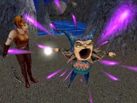 As you go, you encounter other creatures and things along the way, and the cutscenes continue to get stranger and stranger. Basically, Draak is a stand-up comic, and Skye is the proverbial straight man. Eventually, you meet a typical "wise old woman" character, to whom you show the jewel. She responds with something like "Why that, young missy, is a SKITTLES!!!"