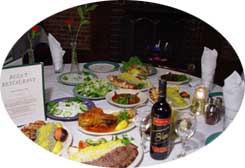I was introduced to Reza's during a particularly ill-fated visit to a different restaurant: it was a group outing to a place that had solely meat-based stuff, and I was the only veg., so I actually had to walk down the street to get something I could eat. I brought back some felafel from Reza's and ate the best meal at the table. Specializing in Persian, Mediterranean, and vegetarian food, Reza's is one of the most purely satisfying restaurants in Chicago. There are many flashier places, but for a good ol' standby, the place is a consistent delight that never bores me. There's plenty of lamb and chicken for the omnivores, but the best dishes are veg. This time around, my dining companion and I split a Chef's Vegetarian Sampler (one of the specials), which consisted of hearty portions of felafel, hummus, baba ghanouj, and dolmeh, plus dill rice and pita bread. Splitting one entrée was a good idea, as there was more food than both of us could eat, and we went home with leftovers.