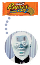The astonishing thing is that both the inside and outside have the same texture and consistency of the usual peanut butter cup. Halfway through my first Inside Out cup, I thought Reese's had a hit on its hands, but then came the dull, irritating aftertaste. There is something in that peanut butter, and it's not sugar. Well, not enough sugar anyhow. Alas, what seemed like an ideal treat turned out to be nothing more than a mulatto imposter, like Will Smith in Six Degrees of Separation.